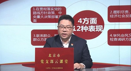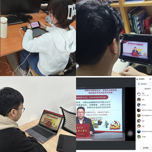 党委组织全体教工、学生党员骨干共同专题学习北京市党支部云课堂线上培训课程,本次课程由北京市纪委监委党风政风监督室副主任于淼主讲,培训主题为《深刻认识形式主义、官僚主义的危害,坚决纠正不作为乱作为问题》。
