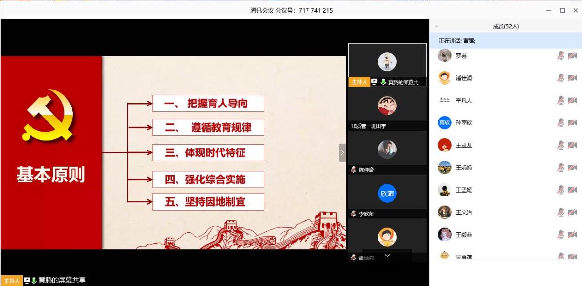 9个学生党支部于4月22日下午通过腾讯会议,开展“战‘疫’不停学,线上聚人心”党课活动,进行“全面加强国家安全教育和新时代大学生劳动教育”线上云党课。
