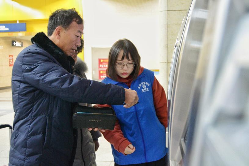 本次志愿活动分为站内和站外两个工作地点,站外主要在自助售票机处,学生党员为前来买票的乘客提供帮助和道路问询服务。在服务的过程中,可能会碰到老人想要买票却不知如何操作的情况,学生党员都会以百倍的耐心来帮助他们进行操作,对购票过程做详细的讲解,对于无纸币的乘客,还会为其推荐网络购票,指引乘客顺利购买所需车票,购票成功后温馨提醒乘客使用方法,避免乘客因使用不当而导致无法进站等不必要情况发生,还存在不清楚坐车路线的乘客,我们也会进行一定的引导,由此减轻车站工作人员的负担。