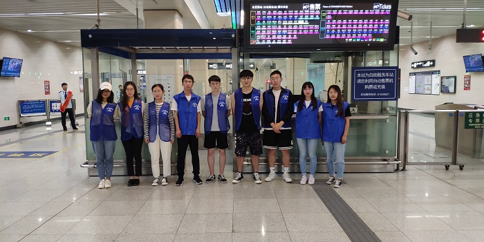 党支部在地铁6号线开展了平安地铁志愿活动。学生党员志愿者们分为三组,经过相关工作人员的安排与培训后,各组由组长带领分别前往郝家府、东夏园和潞城站开始志愿活动。