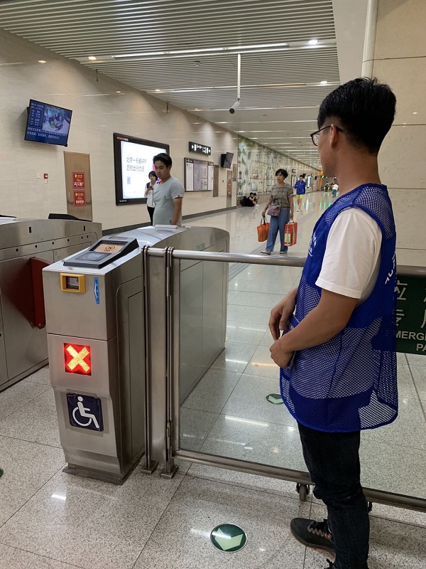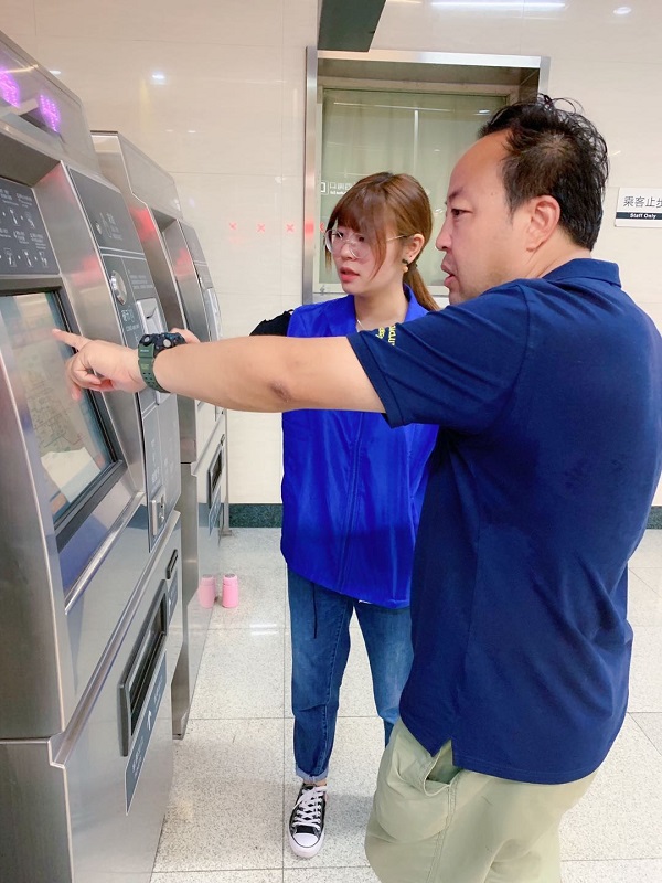 学生党员志愿者们坚守在自己的岗位上,负责帮助乘客使用自助取票机购买地铁车票、协助乘客为公交卡充值、指导乘客顺利进出闸机口等工作。当乘客购票或充值出现困难时,学生党员志愿者都会主动走近,细心跟他们说明方法步骤,最大化的提供我们的帮助。志愿者们站在自助售票机前耐心地指导乘客购票,对乘车前的地铁卡充值、网络购票、现金找换和线路规划等问题及时予以解决,为乘客出行助力;