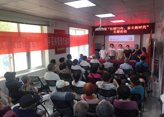 采购管理专业党员在采购管理专业学生党支部书记甄姿老师的带领下,前往天赐良园社区,与天赐良园党总支开展了“壮丽70年,奋斗新时代”的红色“1+1”党支部共建活动。