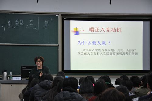 首先,李教授就党的十九大的内容展开了提问,得到了同学们的积极响应,同学们对老师提出的问题进行了准确的回答。接着,李教授从三个层次出发,对同学们展开全方面的教育。李教授深刻地解读了党的十九大的主题“不忘初心,牢记使命”的重要意义,并详细分析了从科技、改革、国防建设、外交等各个方面的政策,同时教导同学们要端正入党动机,要拥有献身于党的精神。随后,李邢西教授带领同学们了解了党史和党章的内容,同时还鼓励同学们要牢记要点,时刻不忘为人民服务的宗旨。