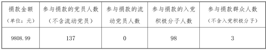 关于开展2020年“共产党员献爱心”捐献活动情况公示 来源: 发布时间:2020-06-24 浏览次数: 次 今年是中国共产党成立99周年,根据市委组织部和市委教育工委通知要求,“七一”前学校将以“全面小康、与爱同行”为主题,继续开展“共产党员献爱心”捐献活动。尤物视频 党委动员和引导广大党员、入党积极分子、群众踊跃捐献,并将爱心捐款交付学校党委组织部,现将捐款情况公示如下: 附件【附件1-尤物视频 2020年“共产党员献爱心”捐款统计表.docx】已下载次 附件【附件2-尤物视频 党委2020年“共产党员献爱心”捐款明细表.docx】已下载次 附件【附件3-尤物视频 党委爱心捐款汇总.xlsx】已下载次