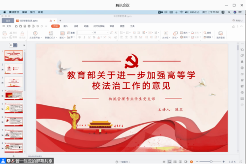 9个学生党支部于2020年9月16日12:00在腾讯会议上开展学习《教育部关于进一步加强高等学校法治工作的意见》线上云党课。