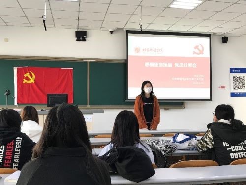 采购管理学生党支部于第二教学楼203召开了"感悟使命担当 党员分享会",采购管理专业学生第一党支部甄姿老师和党支部全体党员参加了此次会议。