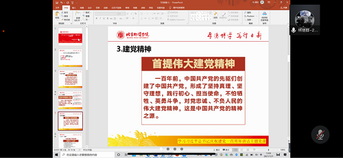 10个学生党支部于2021年7月19日-23日期间,以腾讯会议的形式开展线上学习。本次党课以学习贯彻习近平总书记庆祝建党一百周年的讲话为主题,由各学生党支部书记、副书记、支委、学生党员主讲,随后开展交流研讨,全体学生党支部党员参加学习。