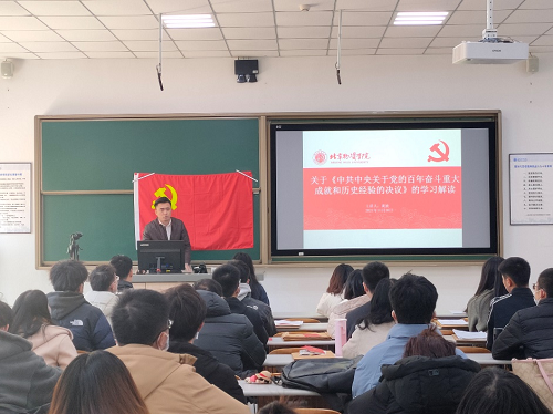 学生党支部对接学校党员领导干部对党的十九届六中全会的内容进行了系统讲授。