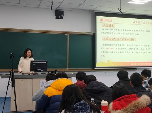 发展党员工作程序”为主题的入党积极分子培训第四讲。此次入党积极分子培训班分别由物流管理、物流工程、采购管理、供应链管理、质量管理工程五个专业学生第一党支部书记李思奇、李清月、甄姿、王志鹏、刘晨老师主讲。