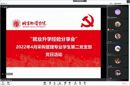 10个学生党支部于2022年4月27日,以腾讯会议形式分别开展“就业升学经验分享”主题党日活动,包括“考研复试与调剂”、“公务员事业单位备考”、“基层就业”、“企事业就业”等主题的线上交流,贴心解答毕业生在考公、考研复试、就业等方面的困惑与问题,为低年级学生党员就业升学提供经验与方向。