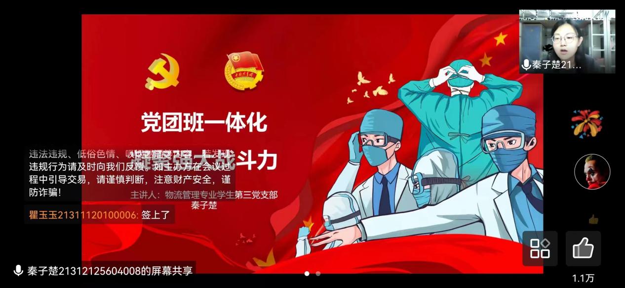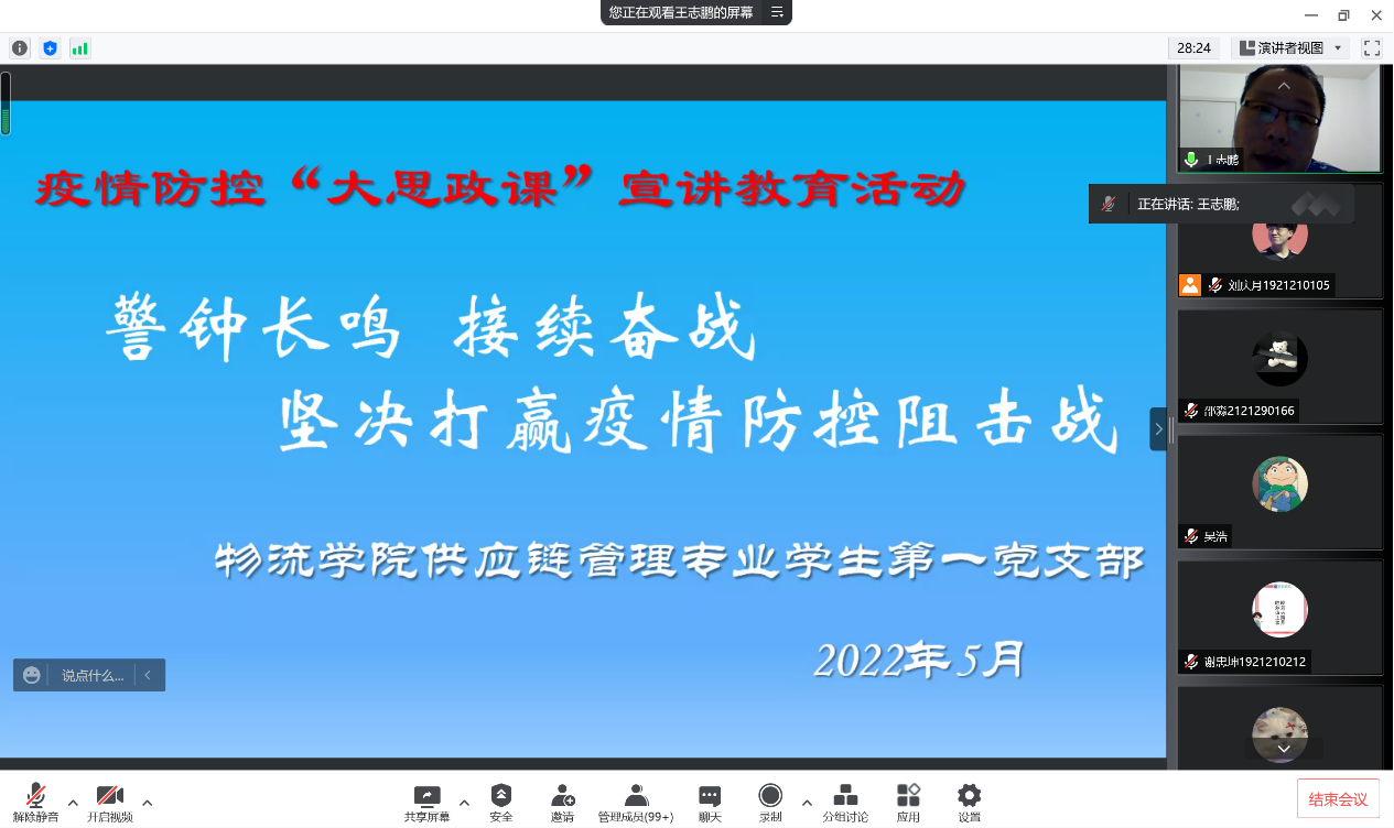 学生党支部通过腾讯会议的形式,分支部由各专业党支部负责辅导员主讲开展第二次疫情防控“大思政课”宣传教育活动,党支部纵向管理下的各个本科生班、研究生班组全体学生参加了本次宣传教育活动。