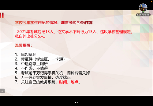最后,希望全体同学树立大局意识、责任意识、纪律意识,配合学校做好各项疫情防控工作,同心协力打赢这场疫情防控保卫战。勉励全体同学更加自律地完成学业,养成良好生活习惯,培养积极、阳光、健康的身心状态,在青春的赛道上跑出当代青年的最好成绩,做堪当民族复兴重任的时代新人。
