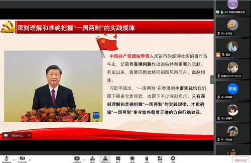 学生党支部学生党员带领全体党员深入学习国家主席习近平在庆祝香港回归祖国25周年大会暨香港特别行政区第六届政府就职典礼上的重要讲话精神,国家主席习近平强调,有伟大祖国的坚定支持,有“一国两制”方针的坚实保障,在实现我国第二个百年奋斗目标的新征程上,香港一定能够创造更大辉煌,一定能够同祖国人民一道共享中华民族伟大复兴的荣光。