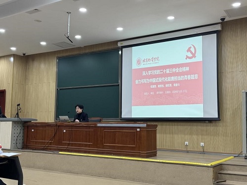 党委书记郝庆主讲。她以“深入学习党的二十届三中全会精神”为核心,深入分析了全会精神的核心要点及重要意义,引导学员们深刻领会全会精神,帮助学员们加深对党的创新理论的理解。授课中,她通过梳理近年来优秀毕业生党员的先进事迹,鼓励学员们立足专业,坚定将个人成才与国家发展相结合的信念,积极投身中国式现代化建设,稳中求进,努力贡献青春力量。