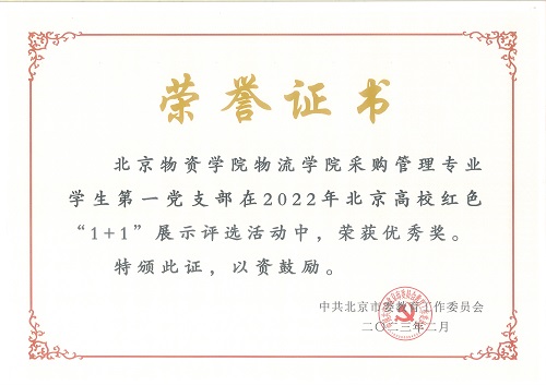 采购管理专业学生第一党支部荣获2022年北京高校红色“1+1”优秀奖
