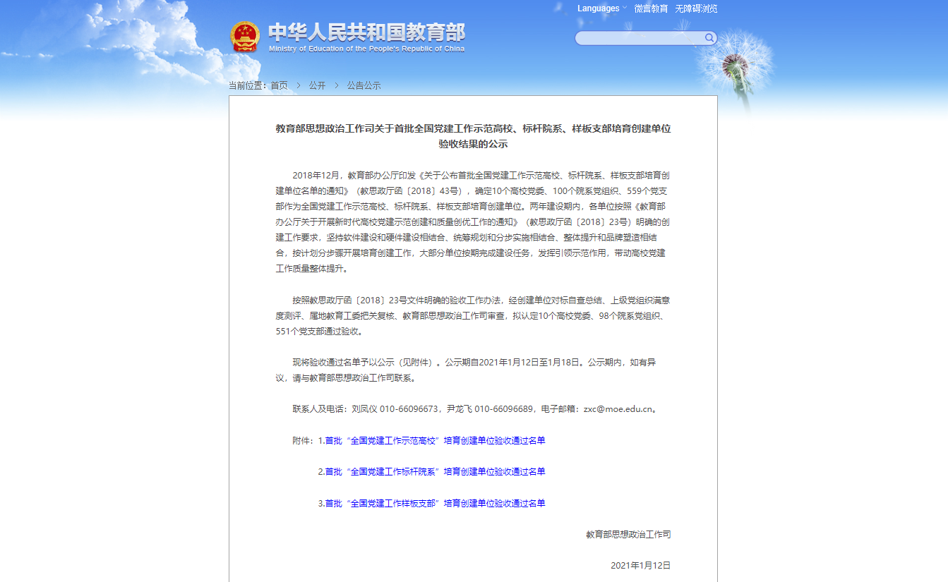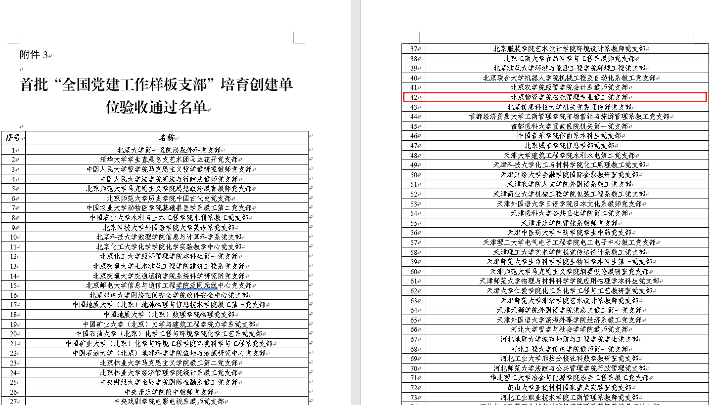 按照验收工作办法,经对标自查总结、上级党组织满意度测评、属地教育工委把关复核、教育部思想政治工作司审查,2021年1月12日,我校物流管理专业教工党支部初步正式通过首批全国党建工作样板支部培育创建单位验收!