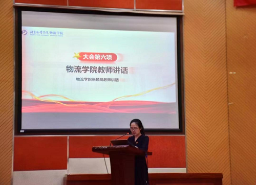 专业课教师张麟凤老师讲话。专业洞察力是物流学子在学习与生活中应该培养,她勉励同学们在学好专业课的基础上,也应该了解物流行业发展的趋势和未来的走向,积极参加各类创新创业和实践项目,激发创新和创业的热情,提升自己的技能和实力,提高自己的竞争力。同时,还应树立正确的世界观、人生观和价值观,树立正确的社会责任意识,传承传统文化,积极参与社会公益活动,为社会作出自己的贡献。