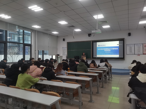 随后,由2018级辅导员李思奇老师介绍了2017级考研升学以及就业情况,并针对就业相关材料以及就业系统展开详细讲解。辅导员李清月老师详细介绍了毕业生就业系统的使用步骤以及三方协议的签订方法。辅导员甄姿老师,向毕业生们介绍了2017级总体就业升学取得的成就以及二学位作用。三位辅导员均对毕业生们表达了祝愿,并鼓励同学们多方位发展,择优就业。