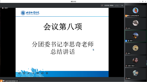 会议最后,由李思奇老师总结讲话。李思奇老师提到,作为一名团支书,要有责任感,要组织好各团支部的政治理论学习活动,使同学们端正思想,树立正确的世界观、人生观和价值观。要不断加强自身学习,赓续薪火,站好一班岗,带好一班人,服务好一方团员,做广大青年团员想得起、靠得住、离不开的贴心团支书。