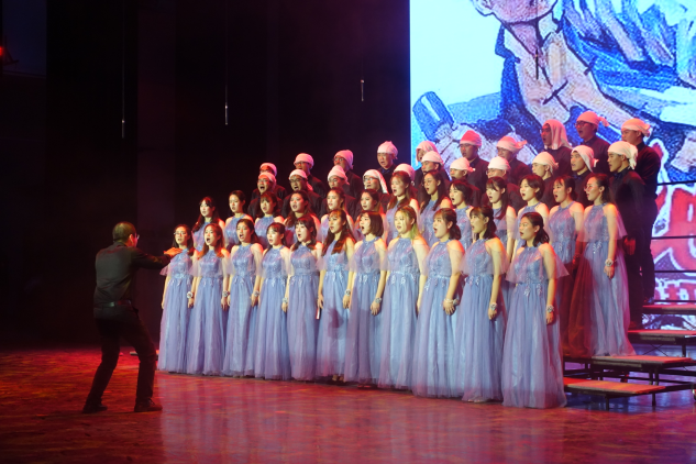合唱团是第六个登台的队伍。第一支歌曲是《东方红+夜空中最亮的星》,伴随着东方红优美的旋律,整个比赛现场都安静了下来,憧憬的感情从歌曲中流露出来,在进入主歌部分后,歌曲的情绪发生了转变,充满信念的歌声仿佛天籁令观众陶醉,当歌曲尾声的时候气氛达到了高潮,各声部用自己的声音演绎出了金色的辉煌。第二支歌曲《地道战》,队员们用铿锵有力的声音仿佛将观众们带回到了那激情燃烧的岁月,雄壮的歌声回荡在每个人的心中。表演结束,尤物视频
