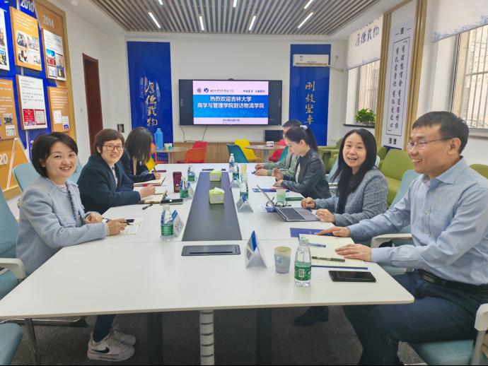 然后,双方领导与教师在104会议室开展了充分交流,特别是学科建设经验、物流管理与工程类专业建设经验、物流实验室建设经验成为了座谈主题,并希望在供应链管理专业建设上加强合作交流,共同为国家物流与供应链人才培养建设提供有力保障。