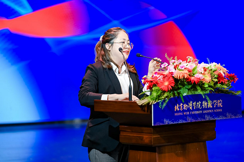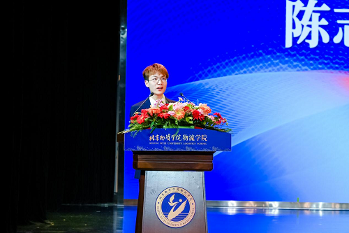 北京盛世华人供应链管理有限公司副总经理秦津娜首先对学校长期稳定向企业输送大批专业性人才表示感谢,感谢在疫情时期物院师生对企业提供的智力支撑助,同时她希望同学们能够明确责任与使命,瞄准职业深入学习专业,努力引领未来物流事业发展。