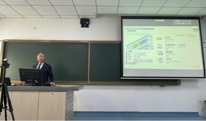 随后,松尾先生一行为物流专业的学生举办讲座。介绍了NX公司应对物流需求的解决方案,讲解了NX公司应对客户面临的问题、客户需求的变化、客户解决生产变化的具体措施,提供了NX公司国际物流专业知识和实践经验,并与学生展开交流与互动,帮助学生更好了解和掌握物流行业的发展动态和就业前景。
