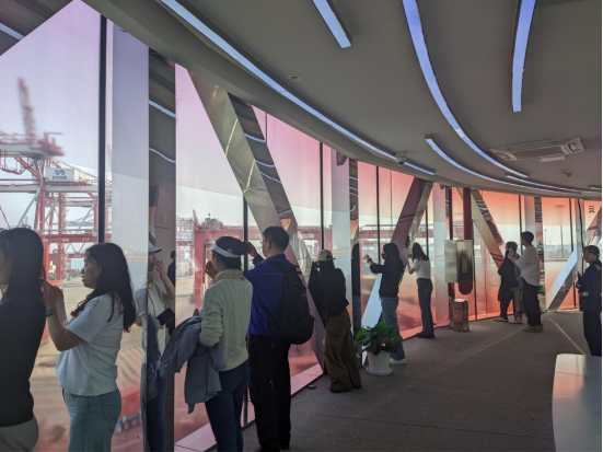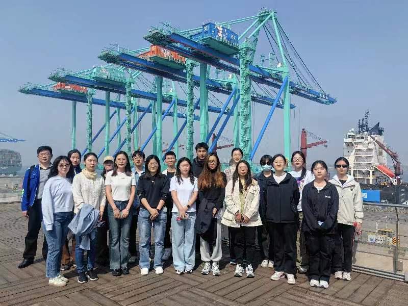 4月12日下午,同学们首先参观了天津港七彩码头,对人工智能交通机器人(ART)集装箱搬运系统和龙门吊装卸集装箱的业务运作流程有了进一步的认识。天津港七彩码头为全球首个“零碳”码头,设施设备采用电力驱动,由“风光储荷一体化”系统实现绿电自主供应,基于单小车岸桥+地面智能解锁站+智能水平运输机器人(ART)+水平运输边装卸堆场核心工艺,加持诸多尖端、硬核科技应用,实现“智慧”+“绿色”全领域深度融合,为全球集装箱码头转型升级打开广阔前景。
