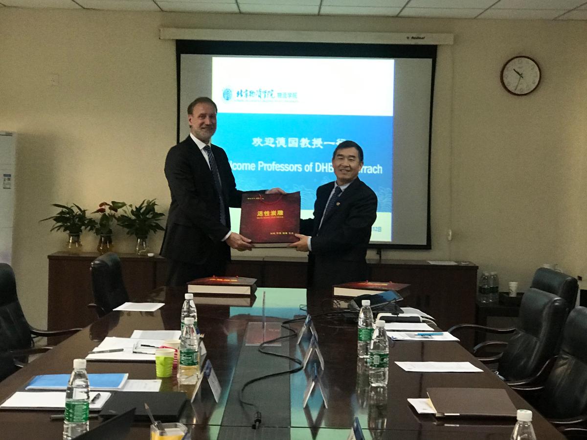 见面会最后,何明珂副校长再次由衷地欢迎三位教授的来访,也感谢勒哈克大学在十四年间对我校赴德学生的帮助,希望两校的友好合作关系继续深化,并向三位教授赠送了礼物。