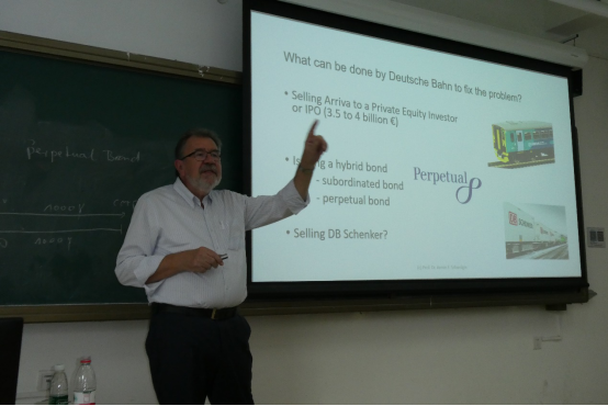 的学生讲授相关专业课程。内容涉及《物流企业的金融和投资决策》、《多式联运》、《库存决策》、《仓储与库存》、《会计学原理》、《德国铁路部门的发展现状》等多方面学术前沿知识。在《德国铁路部门的发展现状》讲座中,阿明教授从德国铁路的区域客运、货物运输、数字化程度等方面详细地介绍了德国铁路的热点话题,内容生动有趣,颇具启发。在各场讲座,德国教授受到了我校学生的热烈欢迎,教授的讲座内容丰富,拓展了我校师生的国际化视野,使学生了解到国际物流最新的研究方向。