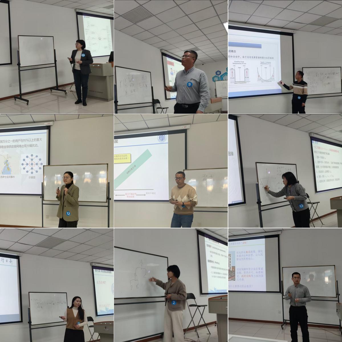 青年教师成长工作坊”多次举办青年教师教学能力提升专题培训,先后邀请北京市青教赛一等奖获得者北京石油化工学院崔丽敏副教授、北京交通大学黄辉教授、法学院彭幸副教授、经济学院李博雅副教授分享青教赛经验与体会,指导青年教师教学基本功提升。3月7日下午,学院组织全体教职工集体观看全国青教赛示范课视频,并学习专家的分析点评意见。