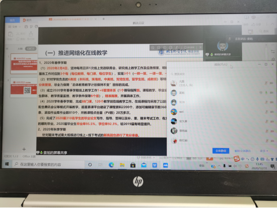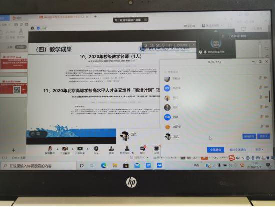 召开线上党委扩大会议(扩大至全体教职工)暨2020年度第九次全体教职工大会。大会旨在全面总结2020年度学院整体建设工作,进行领导班子述职和处级干部年度测评,并部署近阶段重要工作。刘军院长、党委组织部刘艳荣部长莅临指导,会议由学院党委书记王红主持。