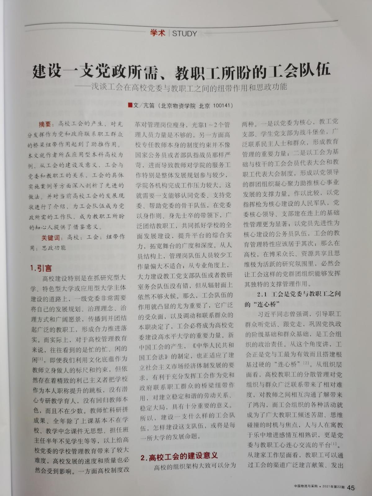 建设一支党政所需、教职工所盼的工会队伍 ——浅谈工会在高校党委与教职工之间的纽带作用和思政功能