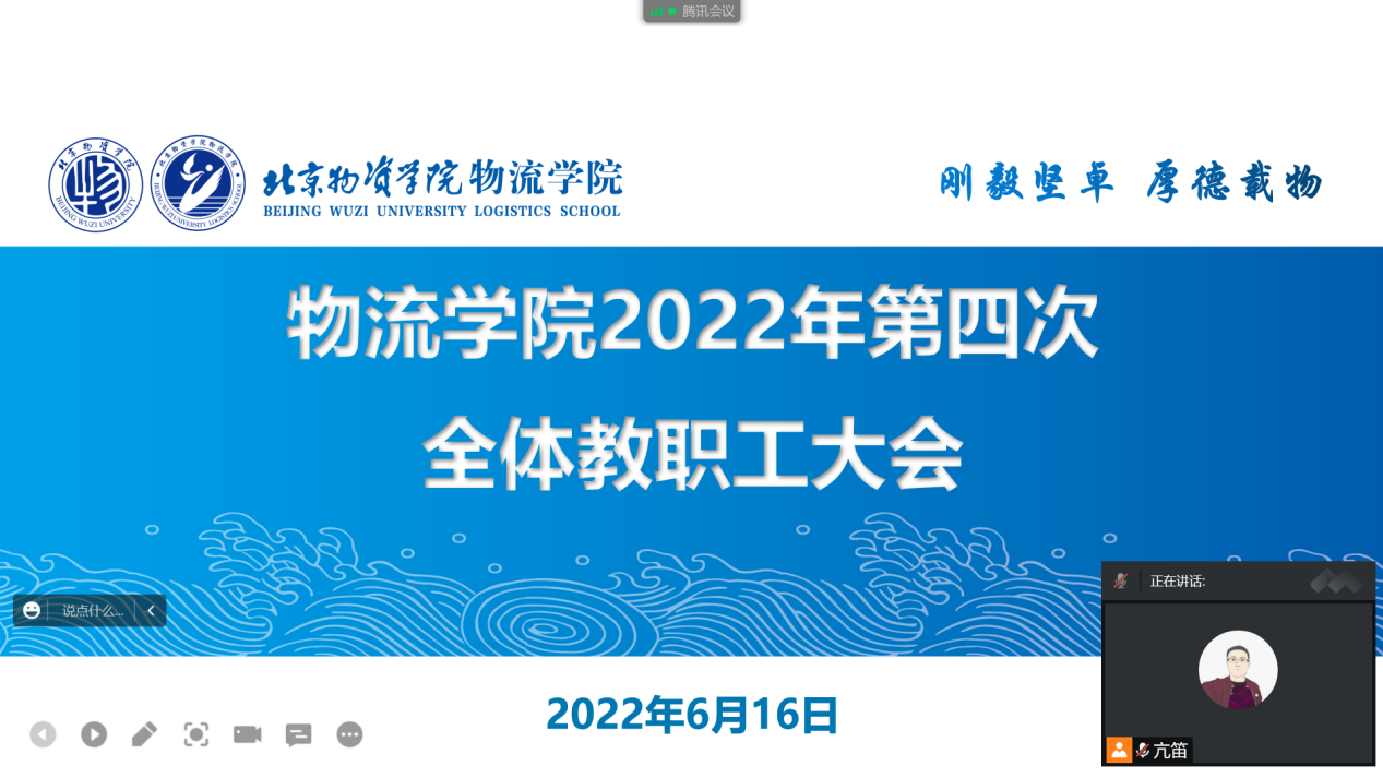 通过腾讯会议召开2022年度第四次全体教职工大会。会议由学院分工会主席亢笛主持。