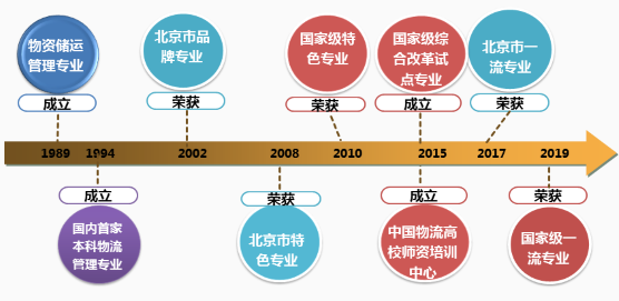 物流管理专业拥有辉煌的发展历史,前身为1989年设立的物资储运管理专业。1994年物流管理专业正式成立,是国内最早进行物流管理专业招生的高校之一。历年来获得国家及北京市多项品牌及特色专业荣誉,累计培养毕业生2000余人。多年来一直引领和推动着我国物流教育的创新和发展。