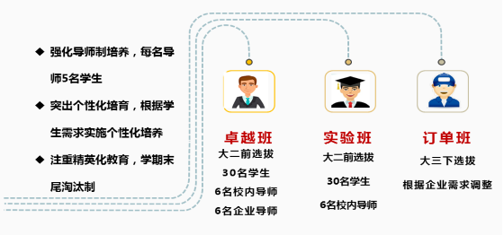 立足个性化人才培养需求,实现精英教育。建立卓越班,强化实战能力,对接学生就业需求;建立实验班,强化学术研究,对接学生国际、国内升学要求;建立校企合作订单班,实现行业职业经理对口化培养打造。同时,构建了与北京交通大学联合培养3+1的双培班,实现全面个性化培养。