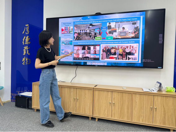Dean Jiang Xu introduced the characteristics and basic situation of the Logistics School, while Director Zhang Xufan introduced the enrollment, training, and employment situation of the Supply Chain Management (International Logistics and Supply Chain Management) major.