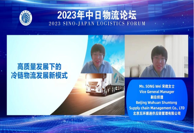 Ms. Song Wei, Deputy General Manager of Beijing Wuhuan Shuntong Supply Chain Management Co., Ltd., gave a speech on the "New Model of Cold Chain Logistics Development under High Quality Development". Ms. Song Wei proposed that the adjustment and upgrading of the cold chain logistics industry structure is accelerating, and the integration of supply chain resources and business collaboration of group enterprises is the trend. Subsequently, the development process of Wuhuan Shuntong Enterprise and its "one system", "three platforms", "five first-class", "six excellent intelligence", and "seven management" were introduced.