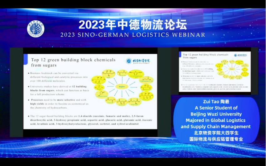 Tao Zui, a senior student majoring in International Logistics and Supply Chain Management at Beijing Wuzi University , actively participated in research and practice related to logistics and supply chain management. Under the guidance of Professor Porz, she completed the "Research Report on China's Green Chemicals Market". The topic she shared was' Experience of collaborating with Professor Porz on a market research report '.