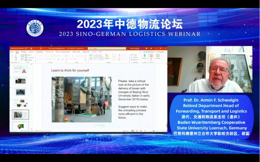 Armin F. Schwolgin, the Retired Department Head of Forwarding, Transport and Logistics of Baden Wuerttemberg Cooperative State University Loerrach, has a rich international management career (Germany, United States, Brazil). Afterwards, he became a logistics professor, department head, and dean of the Baden Wuerttemberg Cooperative State University Loerrach, as well as a visiting professor at Wuzi University, The title of his speech is: "Cooperative Universities in Germany: Programs. Integrating Academic and Business Know How.Performance measurement. Accreditation”. He Introduced and analyzed the German education system and logistics education by answering how to 'Finding well educated staff at all levels'.