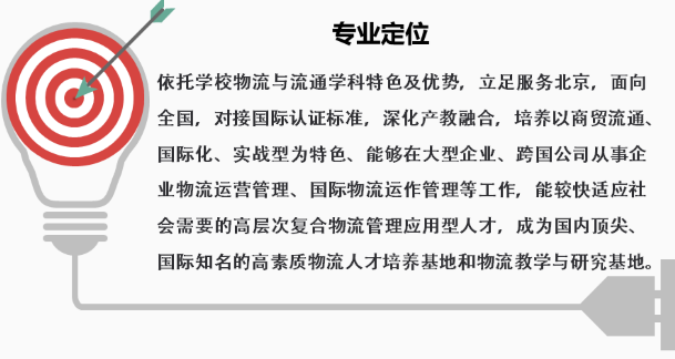 物流管理专业拥有辉煌的发展历史,前身为1989年设立的物资储运管理专业。1994年物流管理专业正式成立,是国内最早进行物流管理专业招生的高校之一。历年来获得国家及北京市多项品牌及特色专业荣誉,累计培养毕业生2000余人。多年来一直引领和推动着我国物流教育的创新和发展。